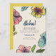 Bright and colourful Hawaiian floral design featuring bold flower details in pink, teal and yellow along side modern navy typography on an ivory coloured background. These invites are the perfect way to celebrate a birthday, Luau, backyard bbq or a simple summer celebration.
