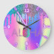Aloha Hawaiian Pineapple Holographic Glitter Drips Large Clock