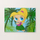 Aloha Honeys are cute little hula girls with a tropical jungle background in these fun jigsaw puzzles. These original little characters bring the message of aloha and the Hawaiian spirit with their dance. Leilani in the leader of the group, as she is Hawaiian. Leanie is a true surfer girl (blond). Kali has latin roots (blue hair) and Lika (brown hair) rounds out the group with her ethnic heritage.