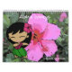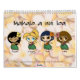 Aloha Honeys are cute little hula girls with brightly coloured plumeria leis. These original little characters bring the message of "aloha" and the hawaiian spirit with their dance. Leilani in the leader of the group, as she is Hawaiian. Leanie is a true surfer girl (blonde). Kali has latin roots (blue hair) and Lika (brown hair) round out the group with their ethnic heritage. This two-page wall calendar features fourteen images of our little hula girls with beautiful floral backgrounds.