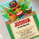 Aloha! it's a luau party! Celebrate your little one's first birthday with our Fresh Luau Hawaiian Tropical Summer Birthday Invitation. This luau party invitations features a tiki mask surrounded with tropical leaves forest and bamboo frames on summer blue sky background.