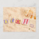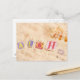 Aloha on a sandy beach with seashells postcard