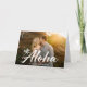 Modern, tropical holiday greeting card displaying your full-bleed horizontal photo on the front with "Aloha" in a white hand-lettered script complimented by a hand-drawn palm tree. Personalize the front of the Aloha holiday card by adding your name. The inside of the Aloha holiday card features white ocean waves against a light grey blue background on the top with your custom message on the bottom. The back of the card features space for an additional photo. Designed to coordinate with our Aloha Palm Tree holiday collection.