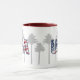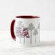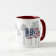 A vintage Hawaiian aloha shirt print in combined with an American flag to create this graphic which is framed by palm trees. Customise this design on your favourite mug.