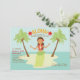 An adorable Hawaiian dancer invites you to party Hawaiian style. She's featured on a private island with two palm trees and the word "aloha" is embellished with hibiscus. (VTZY)