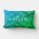 Aloha script turquoise green pineapple pattern lumbar cushion