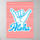 Aloha, Shaka Hand, Hang Loose summer poster, red version.