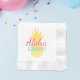 Aloha Summer cocktail party napkins feature stylish pink and turquoise text and a yellow tropical pineapple