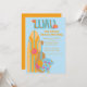 Start your celebration off right with this adorable Luau invitation. Whether it's a backyard barbecue or a kids birthday party this is the perfect invite for you! It has a a light blue background with an orange surf board on the left side of the invite. Leaning on the surf board is a guitar and there's a blue hawaiian shirt with multi coloured hibiscus flowers on it next to the surf board. Across the top of the invitation is the word "Luau" with a red and orange hibiscus flower on each end of the word. Check out the many other designs and products in this line. ©JW Illustrations
