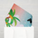 Tissue paper with image of a hula girl dancing on the beach and the word, "Aloha".