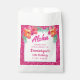 Features a bright tropical “Aloha” and hibiscus flowers, and a hot pink faux glitter background. Personalised with your information. So many fun ways to close bags! You can use matching stickers available in my store, tape, string, or little clothespins. Perfect for all types of events! Matching accessories and invitations available. Design©Rosalind Moore, Cherry Lane Designs.