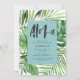 Modern tropical palm leaf watercolor foliage party invitations. Hand painted effect script text. Part of a on trend summer collection. Teal colour.