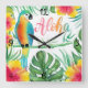 Aloha Tropical Parrot Hibiscus Palm Square Wall Cl Clock