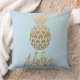 Aloha Tropical Pineapple Blue and Gold Foil Pillow