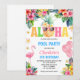Aloha Tropical Pineapple Flamingo Pool Party Invitation