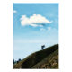 A landscape painting of a white fluffy cloud in the shape of a bird, floating over a single tree on a hillside.