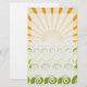 Stationery with design of different shades of green waves with the sun rising on the horizon.