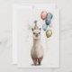 Alpaca Party Hat and Balloons Flat Greeting Card