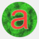 Party sticker for your name starting with A. It is a lower case a with a glitter green background and bright red a.