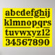 Learn the alphabet and numerals with this wall chart that displays the alphabet as lower case characters, and also numerals. The type style is decorative. Bold black characters on a yellow background.