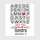 This Valentine's Day, whisper "I love you" in a unique and playful way with this charming custom-cut vinyl sticker featuring an alphabet chart spelling out your love! Featuring bold letters in vibrant colours, this adorable design lets you personalise your message by adding your loved one's name as the "U" in "I love u."