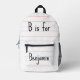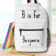 Add a touch of personalised charm to your child's school accessories with our custom school-themed backpack! Featuring a unique English notebook background, this design showcases a notebook page with a beautifully handwritten letter and a child's name, such as "B is for Benjamin." Perfect for both boys and girls, the initial letter and name can be fully customised to make this t-shirt uniquely theirs. Ideal for back-to-school, birthdays, or any special occasion, this backpack combines creativity and individuality in a fun, stylish way. Let your child proudly wear their name and initials with this delightful, personalised school bag design!