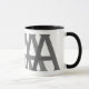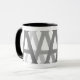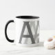 Your initial duplicated in various shades of grey on this ceramic two toned coffee mug