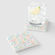The coasters are gorgeous, a quality feel and heavy weight. They look like a precious archeological find. A rustic stone juxtaposed with a modern floral black and white print. I like the way the print goes slightly imperfect on the cut stone edges giving them a kind-of natural beauty.