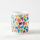 Original alphabet design of bright multi colour letters on a handy mug, customise with your name or message.