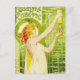 Alphonse Mucha Absinthe postcard. Lithograph poster. Czech artist Alphonse Mucha created some of the most visually arresting commercial artwork of the art nouveau period. Absinthe Robette is a poster featuring a beautiful young woman holding up a green glass of absinthe. The girl has dark red hair and wears a sheer yellow gown. A great gift for fans of Mucha, art nouveau, absinthe and vintage advertisements.