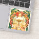 Sticker featuring Alphonse Mucha’s lithograph Reverie (1897). A portrait of a woman in a white dress reads a book, sitting in front of pink and orange flowers. A great gift for fans of Art Nouveau and Bohemian art.