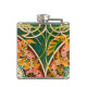 Flask featuring Alphonse Mucha’s lithograph Reverie (1897). A portrait of a woman in a white dress reads a book, sitting in front of pink and orange flowers. A great gift for fans of Art Nouveau and Bohemian art.