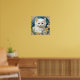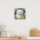 Poster featuring a kitten in the Art Nouveau style of Alphonse Mucha! A white and fluffy kitten with blue eyes poses with yellow flowers. A cute gift for cat lovers and Art Nouveau collectors!