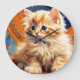 Clock featuring an orange kitten in the Art Nouveau style of Alphonse Mucha. This cute kitty with blue eyes adorably looks at you against a backdrop of a night sky full of stars. A wonderful gift for cat lovers and Art Nouveau collectors!