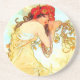 Sandstone Coaster featuring Alphonse Mucha’s lithographic panel Summer (1896). The idea of summer is represented by a beautiful red flower-crowned woman relaxing in a peaceful nature scene. A great gift for fans of Art Nouveau and Czech art.