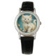 Watch featuring a white cat in the Art Nouveau style of Alphonse Mucha! A fluffy white cat stares wide eyed at the viewer against a blue backdrop. A great gift for cat lovers and Art Nouveau collectors!