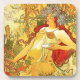 Alphonse Mucha Autumn coasters. Oil on canvas from 1896. Czech artist Alphonse Mucha frequently did allegorical work depicting seasons. This particular version of Autumn is from a series painted in 1896 and feautures a beautiful young woman with dark red hair adorned with white chrysanthemums. She wears a thin blue dress and stand in a vineyard. In her left hand she holds a porcelain dish, and in her right she squeezes a fresh bunch of purple grapes still on the vine. A beautiful gift for fans of Alphonse Mucha, Art Nouveau, and allegorical paintings.
