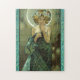 Alphonse Mucha Clair De Lune puzzle. Lithograph allegorical painting. Alphonse Mucha is famous for his art nouveau advertisements and posters featuring beautiful young women surrounded by flowers and intricate ornamentation. Clair de Lune or Evening Star features a gorgeous young woman wearing a starry dress. She wears flowers in her light brown hair as the crescent moon glows behind her. A great gift for fans of Alphonse Mucha, art nouveau, and vintage posters.