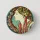 Alphonse Mucha Laurel button. Lithograph poster from art nouveau period. Czech painter Alphonse Mucha created some of the most beloved advertisements and posters of the art nouveau period. Laurel is a beautiful spring allegory featuring a gorgeous young woman in profile with flowers and laurels in her hair. The portrait is framed by an intricate pattern of interlocking leaves. A beautiful gift for fans of Mucha, art nouveau, and vintage art posters.