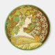 Alphonse Mucha Laurel magnet. Lithograph poster from 1901. Czech artist Alphonse Mucha was renowned for his allegorical works. Laurel is a painting featuring a beautiful young brunette draped in ivy. She looks onward in profile and wears a yellow rose on her chest. The poster is intricately ornamented with interlocking ivy leaves, tiles and arrows. A great gift for fans of Mucha, art nouveau posters, and vintage prints.