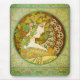 Alphonse Mucha Laurel mouse pad. Lithograph poster from 1901. Czech artist Alphonse Mucha was renowned for his allegorical works. Laurel is a painting featuring a beautiful young brunette draped in ivy. She looks onward in profile and wears a yellow rose on her chest. The poster is intricately ornamented with interlocking ivy leaves, tiles and arrows. A great gift for fans of Mucha, art nouveau posters, and vintage prints.