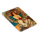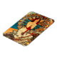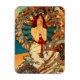 Alphone Mucha Monaco Monte Carlo magnet. Lithograph poster from 1897. Czech artist Alphonse Mucha stands as one of the greatest artists of the Art Nouveau period. Monaco Monte Carlo remains one of his most popular posters. The work features a young brunette in a white dress with red sash. She is surrounded by a wreath of red and blue flowers, leaves, and little birds. The girl wears red flowers in her hair and holds her hands up to her mouth. A great gift for fans of Alphonse Mucha, art nouveau, and vintage posters and advertisements.
