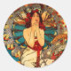 Alphone Mucha Monaco Monte Carlo stickers. Lithograph poster from 1897. Czech artist Alphonse Mucha stands as one of the greatest artists of the Art Nouveau period. Monaco Monte Carlo remains one of his most popular posters. The work features a young brunette in a white dress with red sash. She is surrounded by a wreath of red and blue flowers, leaves, and little birds. The girl wears red flowers in her hair and holds her hands up to her mouth. A great gift for fans of Alphonse Mucha, art nouveau, and vintage posters and advertisements.