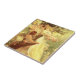 Alphonse Mucha Spirit of Spring tile. Oil painting on canvas from 1894. Czech artist Alphonse Mucha defined art nouveau in the 1890s with his beautiful posters and paintings. Spirit of Spring is one of his allegorical works depicting three young women arrayed in flowers. A beautiful gift for fans of Alphonse Mucha, art nouveau, vintage prints, and Spring art.