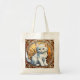 Tote Bag featuring a cat in the style of Alphonse Mucha! This fluffy white kitten looks adorably at the viewer. Flowers decorate the scene. A purr-fect gift for cat lovers and Art Nouveau collectors!
