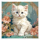 Photo Print featuring a white cat in the style of Alphonse Mucha! This blue eyed fluffy kitten poses with pink flowers and blue blankets. A fabulous gift for cat lovers and Art Nouveau collectors!