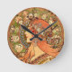 Featuring the striking profile of a majestic woman against a prominent halo, this design was originally made as a company calendar for Champenois for the year 1897. The theme - the harmonious working of the universe - is reflected in the twelve signs of the zodiac, which are incorporated in the circular band with decorative motifs featuring hexagrams - mystic symbols frequently appearing in Mucha’s designs. Cute clock for him, for her and for your home!