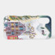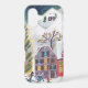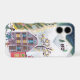 Festive iPhone case featuring a charming alpine Christmas village with a glowing holiday tree and snowy winter scenery. Perfect for cozy seasonal desks and winter holiday decor. Original artwork by Caroline Bonne Müller.