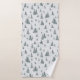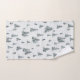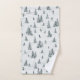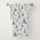 This bath towel set features downhill skiers navigating through tree-lined slopes, with elusive yetis playfully hiding and darting across the scene.