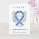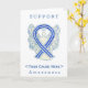 The guardian angel greeting or note card features the picture of a blue and white striped awareness ribbon angel painting. The card states "Support <Your Cause Here> Awareness". Add your own optional words or message to the greeting card for personalised angel art cause awareness notecards! You can also remove the text for an art only angel note cards. The blue and white striped awareness angel ribbon painting art greeting cards can be customised with personalised messages to make great awareness cause art cards for fundraisers, awareness gifts, or other special events. Give this angel art card as an awareness ribbon gift for any occasion.